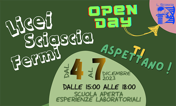 L’Istituto, per consentire alle famiglie e agli alunni delle Scuole superiori di I grado di conoscerne l’offerta formativa, ha organizzato – nelle date dal 4 e del 7 dicembre 2023, Domenica 21 gennaio 2024, ed infine dal 15 al 19 gennaio 2024 – manifestazioni di Open Day che prevedono la […]